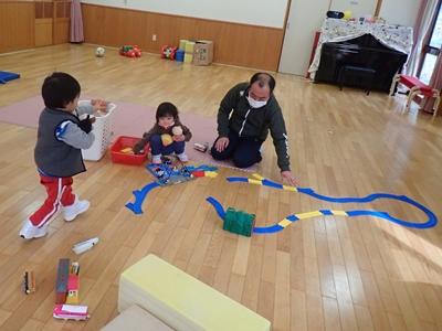 今日は室内で・・・ 2021年2月12日 14時48分 午前中は少し肌寒く、園児たちは室内で遊んでいました。ブロックやプラレール、滑り台などいろいろな遊びをしていました。でも、必ず近くにアンパンマンたちが・・・ いいね