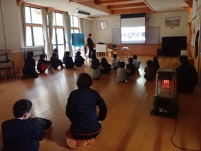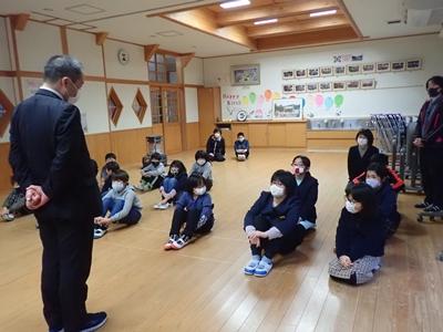 2021年2月4日 15時15分2校時終了後の業間に、全校が多目的ホールに集まりました。