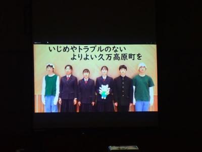 久万中学校でとりまとめてもらった、町内各校の「いじめストップビデオ」を見ました。