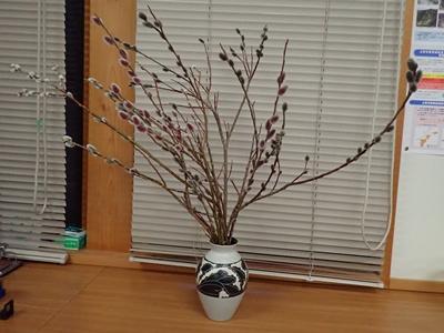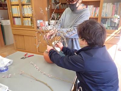 2021年2月3日 18時31分暦の上では春になります。保護者の方がネコヤナギを届けてくださいました。家元2人がさっそく花瓶に・・・