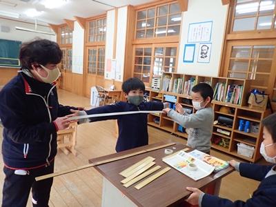 2年生は両手を広げた長さから、1メートルについて理解していました。