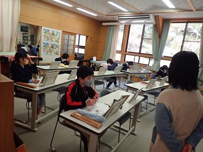 5・6年生は音楽で鑑賞曲の感想を発表していました。