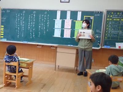 今日は給食センターの先生(栄養教諭)が、各教室で、給食ができるまでに関わってくれている人について、お話をしてくださいました。
