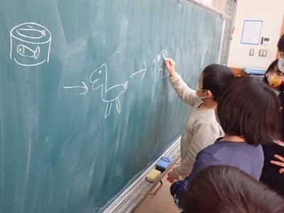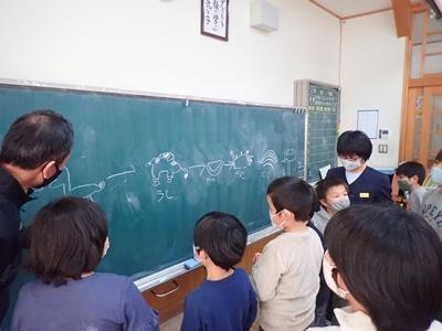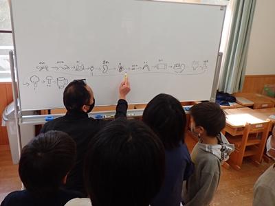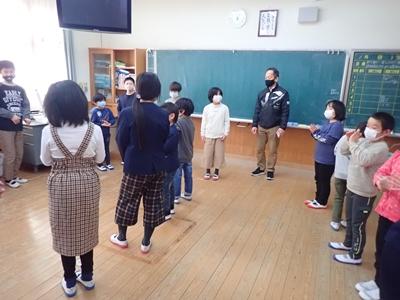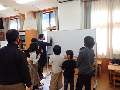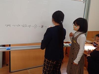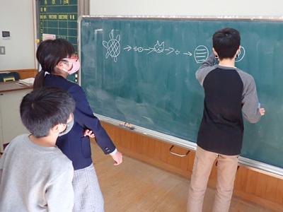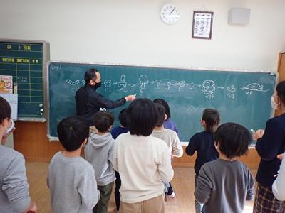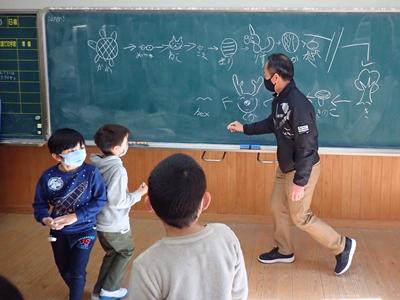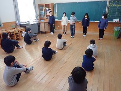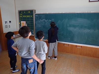 2021年1月28日 16時34分今日の全校遊びは4・5年生のアイディアで「絵しりとり」です。縦割りの3チームに分かれてしりとりをしていきます。