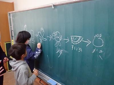 しりとりを考えて、絵だけで伝えるのは難しいですね。