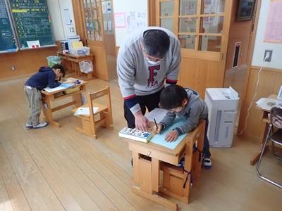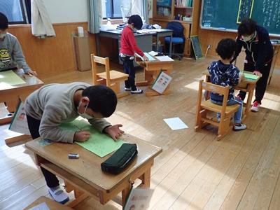 5時間目です。1・2年生は、掲示用の人権標語をかいていました。