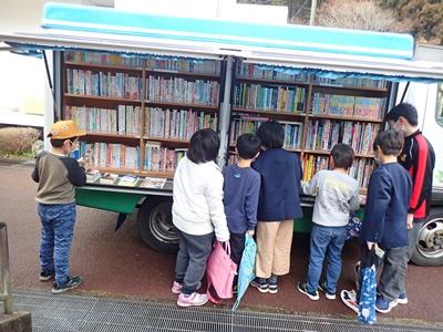 やまびこ号(移動図書館) 2021年1月22日 14時00分 やまびこ号(移動図書館)がやって来ました。みんな、思い思いに本を手に取ります。本の貸し出し、ありがとうございます。ちょうど、雨が上がっていてよかったです。 いいね