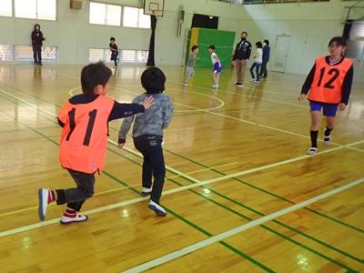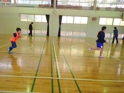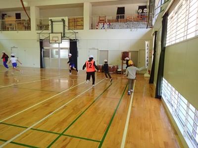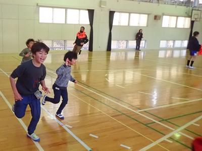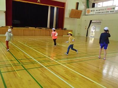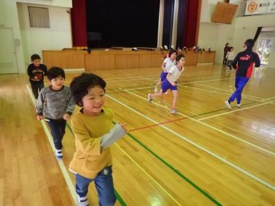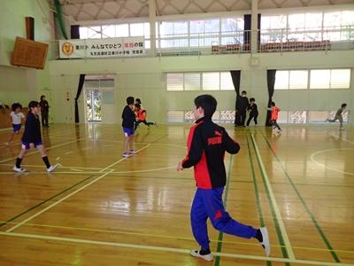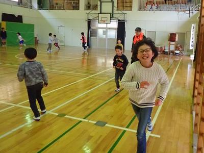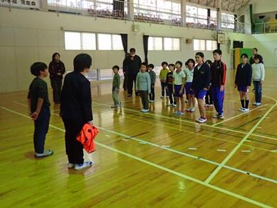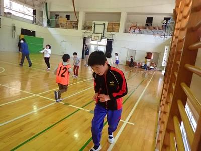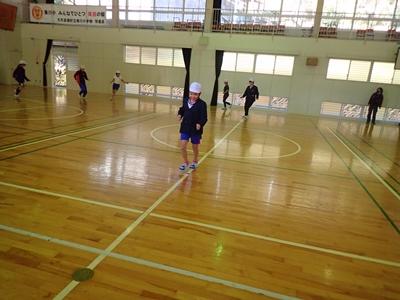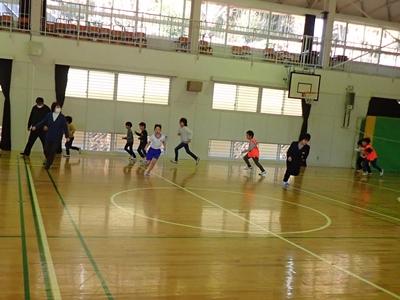 昼ころには気温も10度を超えてきました。昼休みは体育館で全校遊びです。今日は「線踏みおに」です。